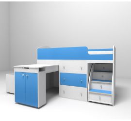 В таких кроватях спальное место располагается на втором ярусе. А вот снизу может располагаться место для творчества, рабочее место, игровая зона, шкаф, комод или полки. Для того, чтобы залезть на кровать, ребенку необходимо будет взобраться по специальной лестнице. Детская кровать-чердак полностью безопасна для малыша. Это объясняется ее устойчивостью, наличием бортика безопасности и его высотой, надежностью крепежа, удобной лестницей и высотой пространства между двумя ярусами.