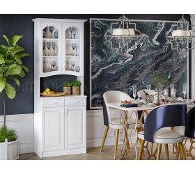 - Эстетическая привлекательность. Белый цвет ассоциируется с чистотой и свежестью. Буфет белый легко вписывается в любой интерьер, будь то классический, современный или скандинавский стиль. Его нейтральный оттенок позволяет сочетать его с цветами обеденных столов и материалами, создавая гармоничное пространство.