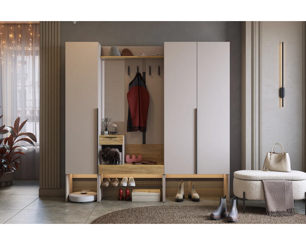 Модульная прихожая Баско К1 кашемир / дуб крафт золотой состоит из 16 модулей: