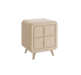 • Комбинированные виды, например, дерево обитое кожей или фактурной тканью. Тандем различных материалов на пике моды. Такая тумба не потеряется среди роскошной обстановки, а в самой простой комнате станет изюминкой.